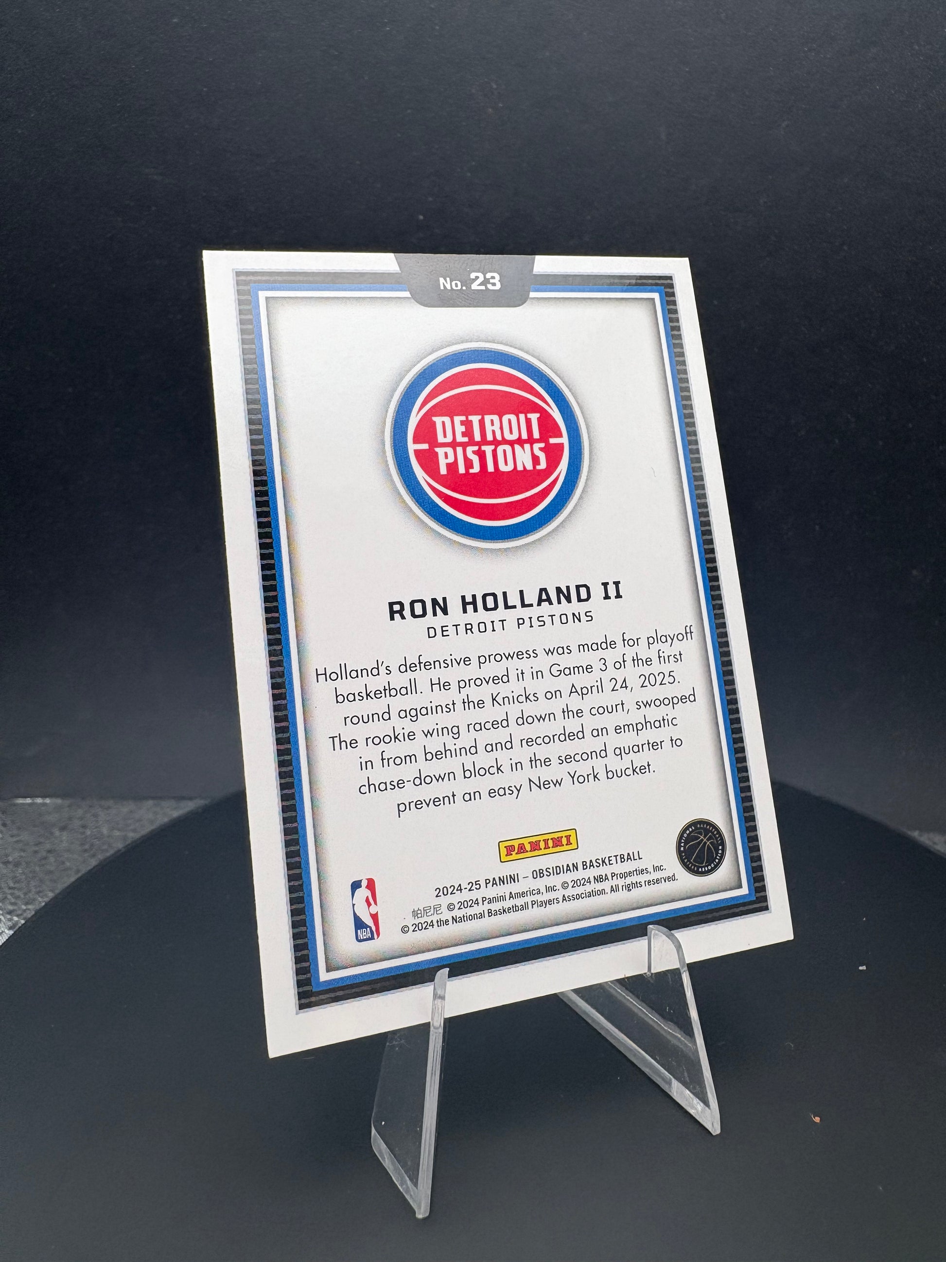 The 2024-25 Obsidian Ron Holland II Color Blast RC showcases an elite rookie card distinguished by its vibrant color infusion and clean, sharp design. Part of the prestigious Obsidian series, this card offers collectors a highly sought-after piece that captures Ron Holland II’s promising emergence. Its premium finish not only highlights the player’s image but also enhances durability, ensuring lasting value. Ideal for serious collectors seeking to expand their portfolios with top-tier rookie memorabilia.