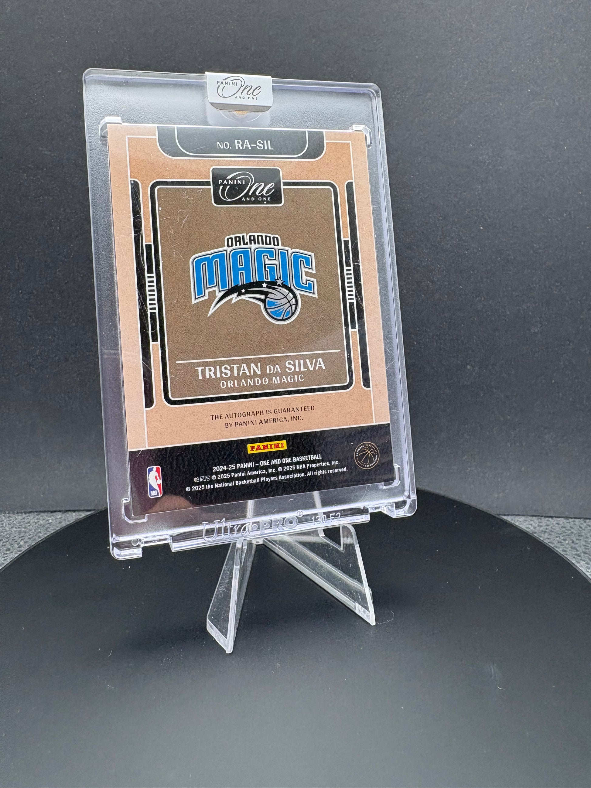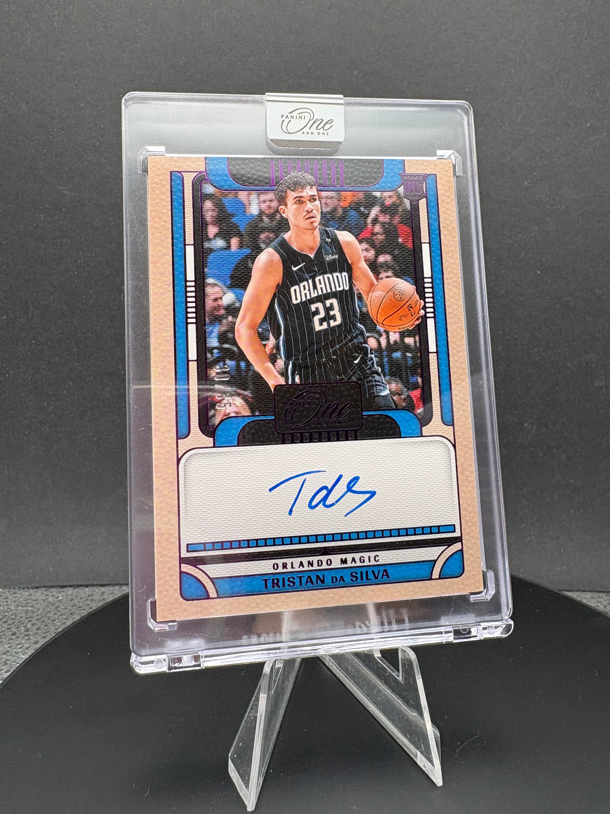 Tristan Da Silva's 2024-25 One and One autographed card delivers premium collectibility with its limited /35 print run. This exclusive release captures the rising talent mid-season, featuring an on-card signature that authenticates its value. One and One's premium construction ensures exceptional card quality and durability for serious collectors. Perfect for Da Silva enthusiasts or those building a comprehensive modern basketball card portfolio. A scarce addition to any collection with strong investment potential.