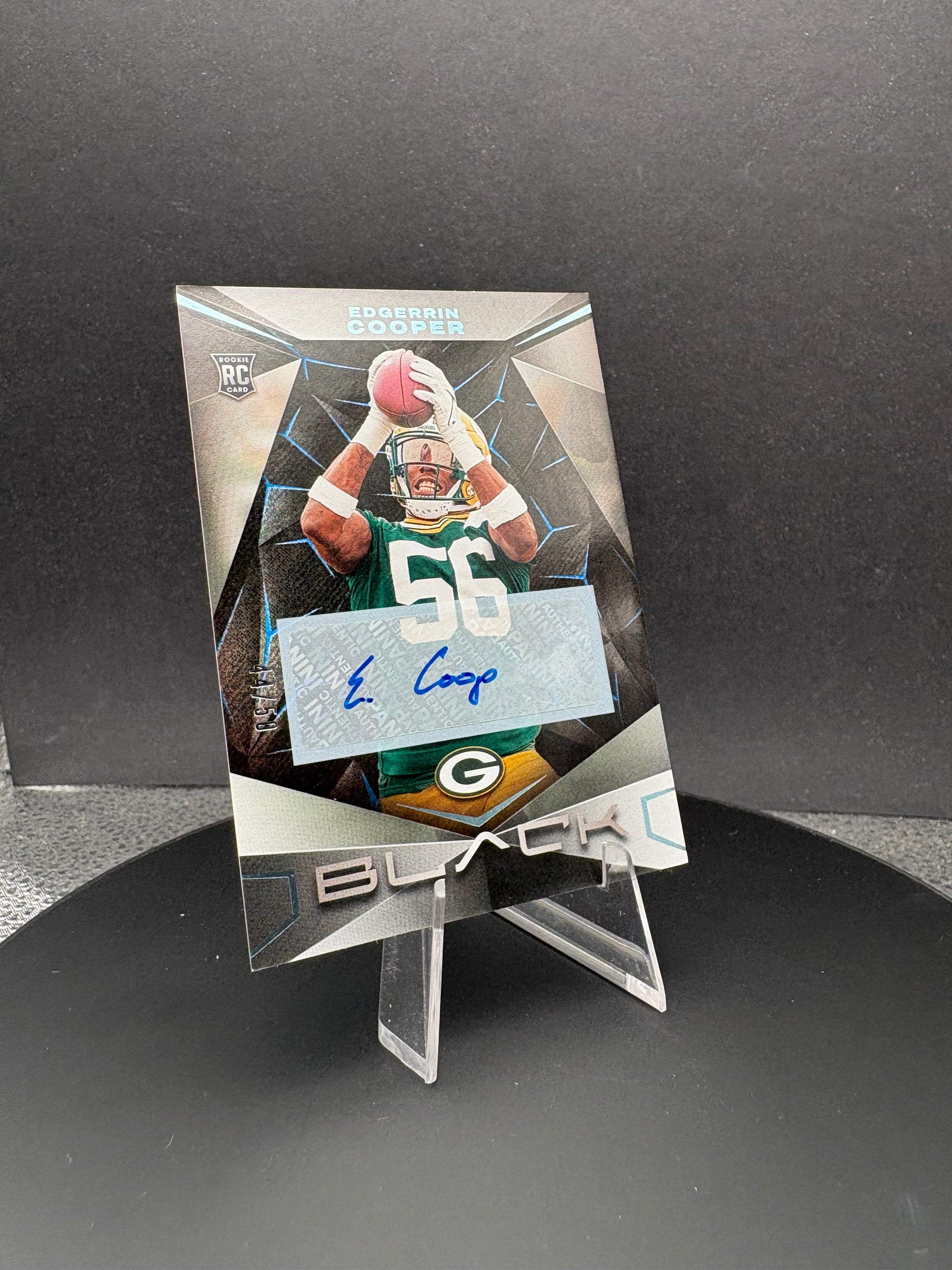 Rare 2024 Black Edgerrin Cooper autographed rookie card, limited to just 50 copies. This premium RC features an on-card signature from the standout prospect, graded for authenticity and condition. A must-have for serious collectors seeking low-numbered parallels of emerging talent. Perfect for building a focused collection or as an investment piece in modern sports cards.
